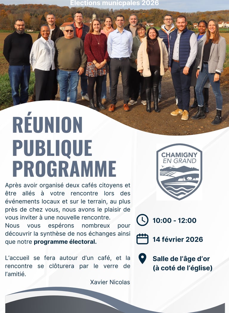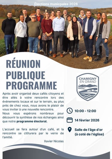 L’équipe de campagne viendra à votre rencontre lors de déplacements dans le village pour partager avec vous notre vision pour Chamigny. Ces moments d’échange seront l’occasion de dialoguer directement avec vous sur les grands projets à venir, d’écouter vos idées et de construire ensemble un avenir qui vous ressemble. Nous souhaitons que chaque habitant puisse contribuer, dès maintenant, à dessiner les contours du Chamigny de demain.