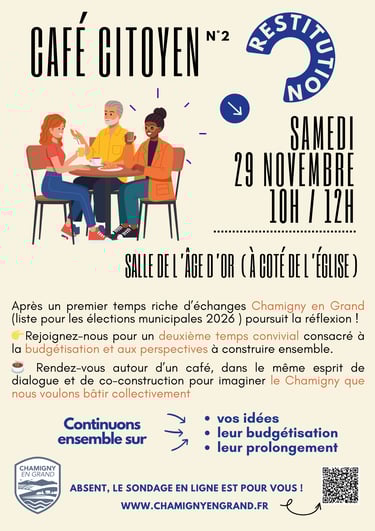 L’équipe de campagne viendra à votre rencontre lors de déplacements dans le village pour partager avec vous notre vision pour Chamigny. Ces moments d’échange seront l’occasion de dialoguer directement avec vous sur les grands projets à venir, d’écouter vos idées et de construire ensemble un avenir qui vous ressemble. Nous souhaitons que chaque habitant puisse contribuer, dès maintenant, à dessiner les contours du Chamigny de demain.